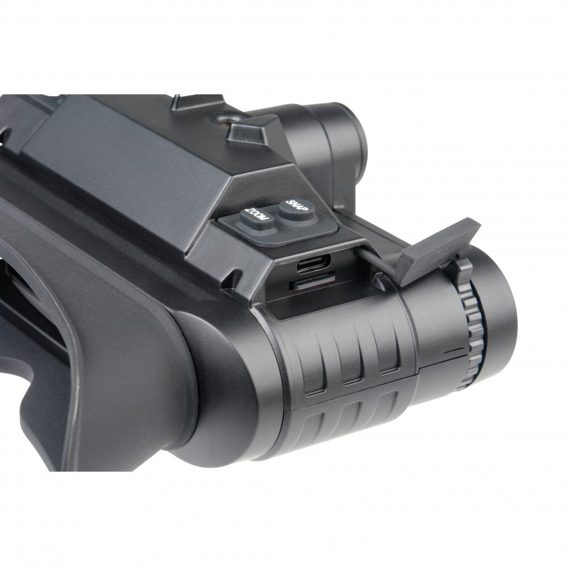 Прибор выполнен в компактном и легком корпусе весом всего 350 грамм, что снижает нагрузку на шейные позвонки при длительном ношении на шлеме. В комплект поставки уже входят все необходимые кронштейны и регулируемое оголовье, позволяющее использовать бинокль без защитного шлема. Прочный пластик корпуса устойчив к механическим повреждениям и перепадам температур от -10 до +50 градусов Цельсия. Кнопки управления расположены таким образом, чтобы ими было удобно пользоваться на ощупь даже в перчатках.