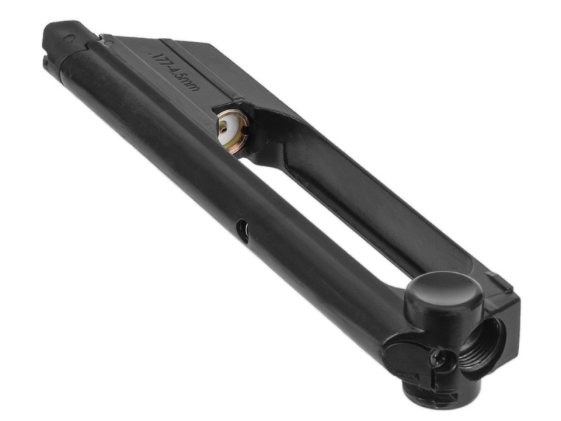 Магазин выполнен в стильном черном цвете, который гармонично сочетается с дизайном пневматического пистолета. Это не только добавляет тактической привлекательности вашему оружию, но и позволяет ему выглядеть более профессионально. Добавляя этот акцент, вы можете быть уверены, что ваш пневматический пистолет будет выделяться среди аналогов.