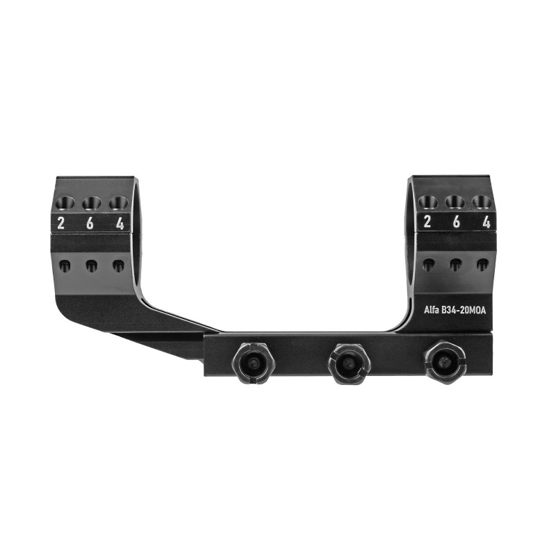 Моноблок Veber Alfa B34-20MOA предназначен для крепления оптических прицелов с диаметром трубки 34 мм на планку Weaver. Благодаря цельной конструкции обеспечивается точная соосность прицела. Угол наклона 20 MOA позволяет эффективно задействовать весь запас вертикальных поправок прицела, что особенно важно при стрельбе на большие расстояния. Изготовлен из прочного и лёгкого алюминиевого сплава 7075, устойчивого к коррозии. В комплекте поставляется шестигранный ключ для установки.