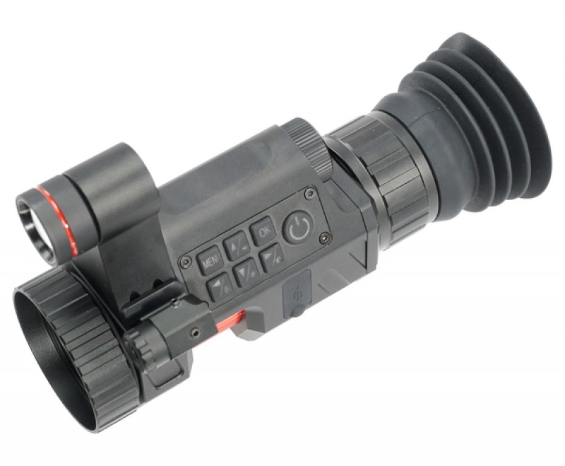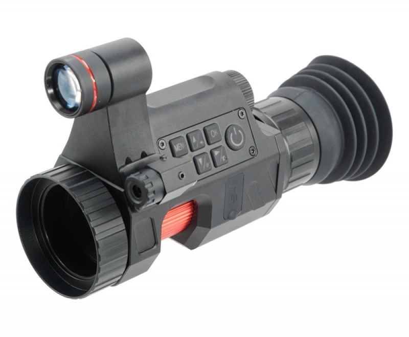 Встроенный инфракрасный осветитель с длиной волны 850 нм и тремя уровнями яркости обеспечивает чёткое изображение в полной темноте на расстоянии до 300 метров. Это позволяет эффективно использовать насадку в ночное время без дополнительного освещения.