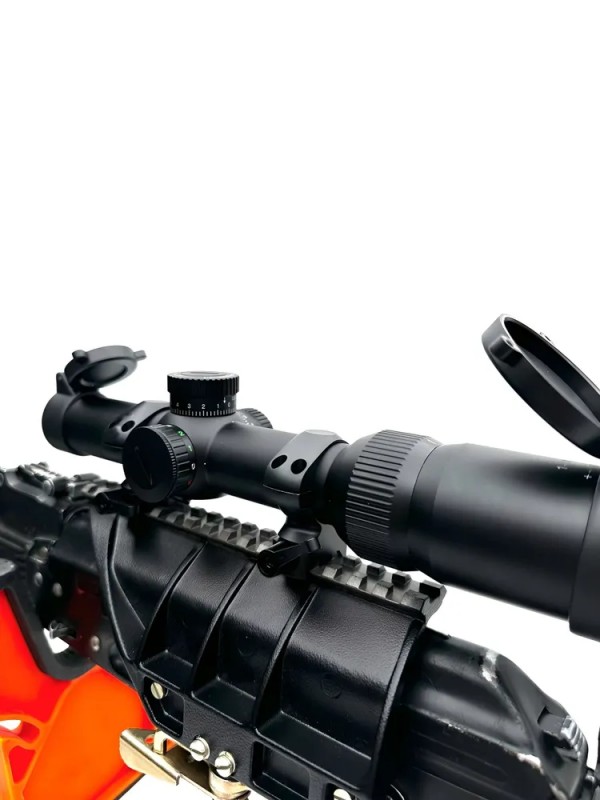В основе прицела — тактическая сетка RG25, изначально разработанная под популярные калибры.223 Rem и 5,56 NATO. На ней нанесены баллистические метки, которые позволяют быстро вводить поправки на дистанцию без пересчёта в MOA. Поскольку сетка находится во второй фокальной плоскости (SFP), её размер остаётся неизменным при смене увеличения. Это плюс для стрельбы на максимальном увеличении, где все промеры точны, и минус для новичков, привыкших к «растущей» сетке, но на практике охотники быстро адаптируются к такой логике.