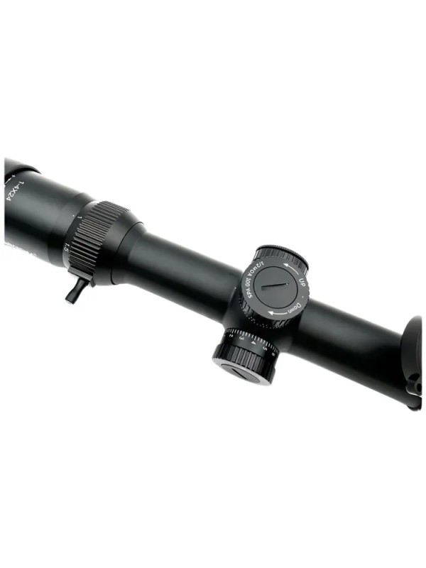 Барабаны ввода поправок выполнены по открытому типу — их не нужно откидывать или откручивать колпачки, чтобы внести корректировки. Каждый щелчок имеет чёткую фиксацию, так что вы можете менять настройки на слух и на ощупь, не отрывая взгляда от цели. Это преимущество для загонной охоты, где время на пристрелку ограничено. При этом барабаны достаточно крупные, чтобы работать в перчатках, а их расположение продумано так, чтобы случайное сбитие настроек было маловероятным.