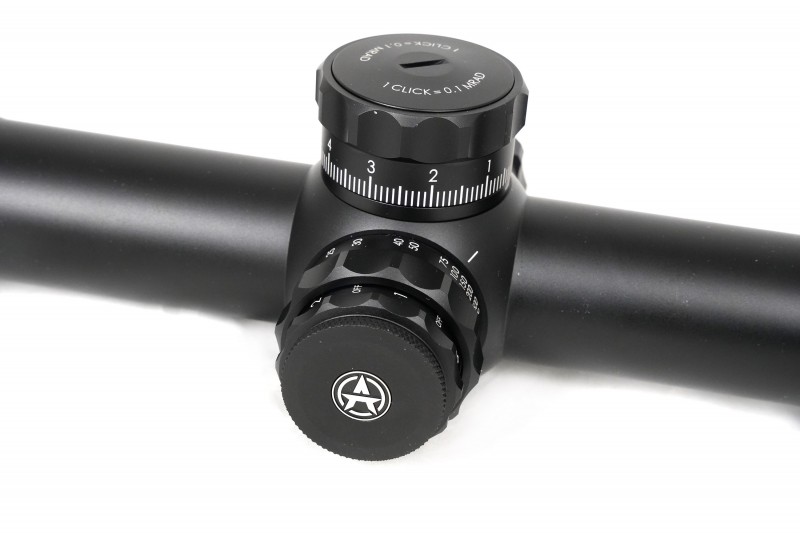 Прицел оснащен открытыми барабанами ввода поправок с ценой клика 0.1 mil, что обеспечивает исключительную точность и удобство регулировки. Открытые барабаны позволяют быстро вносить необходимые поправки по вертикали и горизонтали без использования инструментов, что особенно ценно в полевых условиях. Каждый клик соответствует точному изменению точки попадания, позволяя стрелку максимально точно настроить прицел под конкретные условия.